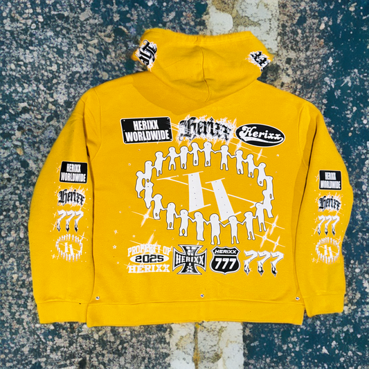 HERITAGE XX (HERIXX) JACKPOT 777 Rhinestones mustard Zip Hoodie