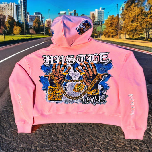 HERITAGE XX (HERIXX) PINK “HUSTLE” Rhinestone Zip-Up Hoodie