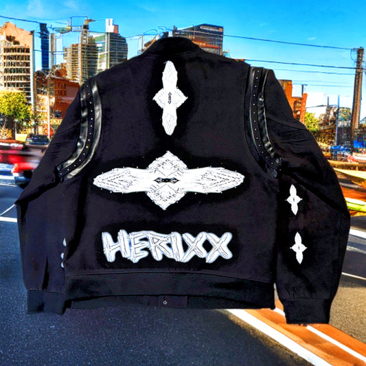 HERITAGE XX (HERIXX) "Praying Hands" BLACK Varsity Jacket
