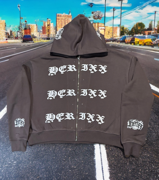 HERITAGE XX (HERIXX) Charcoal “HUSTLE” Rhinestone Zip-Up Hoodie